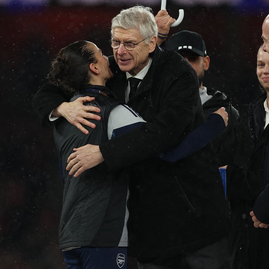 (教授拥抱阿森纳女足主帅蕾妮姐)