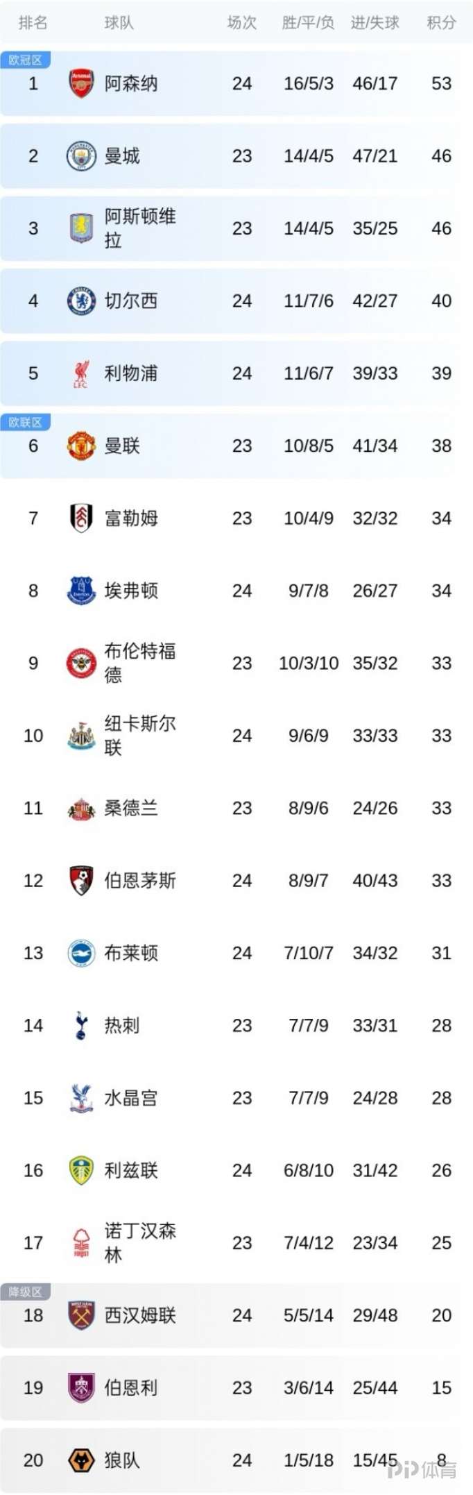 未赛的曼联将战富勒姆,曼城将客战热刺,维拉对阵布伦特福德。